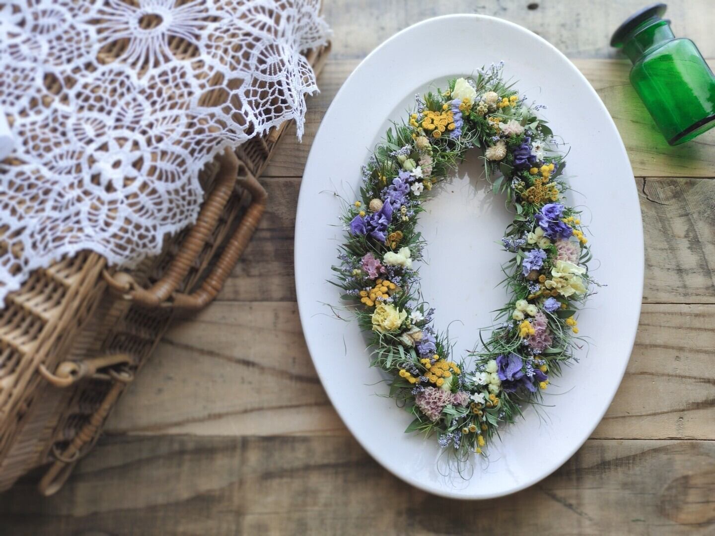 ドライフラワーのオーバルリース 春待ちリース 【26202】
